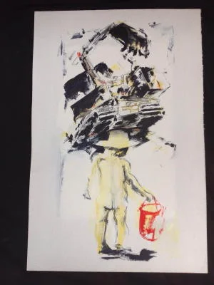Acrylic, graphite & enamel on gesso primed felt card.